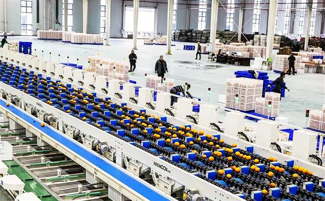 重庆(忠县)现代农业柑橘产业园柑橘自动化分拣现场。通讯员 余鸿 摄/视觉重庆