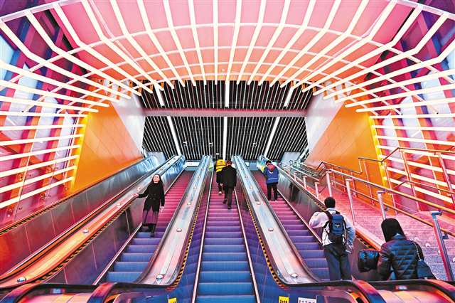 2月10日,重庆轨道交通4号线西延伸段开通,嘉州路站美轮美奂。