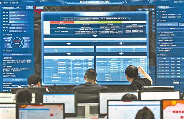 沙坪坝数字化城市运行和治理中心,工作人员在后台查看城市道路塌陷风险评估模型。(资料图片)记者 张锦辉 摄\视觉重庆