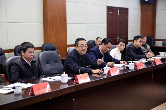 北碚区区长何庆(左二)在签约仪式上讲话。秦廷富 摄