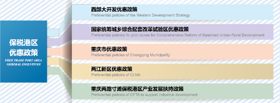 为鼓励企业到重庆两路寸滩保税港区投资兴业,促进重庆及西部地区开放型经济发展,重庆市政府和重庆两路寸滩保税港区管理委员会分别出台了产业发展扶持政策和实施细则,主要针对符合保税港区产业发展导向的高新技术制造业、高端精密加工制造业、进出口贸易产业、现代物流业、现代金融业、研发、检测、维修和总部结算经济等相关产业。优惠政策涵盖了进出口环节税收及监管政策、出入境检验检疫政策、外汇政策和给予企业所得税、企业核心管理人员个人所得税、增值税及营业税的补贴扶持政策。