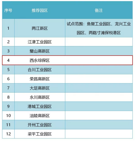 2018年12月26日,经园区自愿申报、区县经济信息主管部门推荐、专家评审、综合复核平衡,市经济信息委拟确定西永综合保税区等12个园区为重庆市第一批智慧园区试点园区。