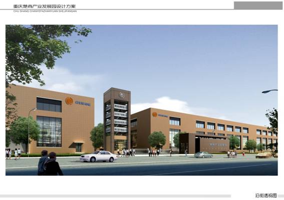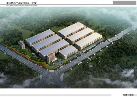 重庆楚商产业园由重庆楚商投资发展有限公司投资建设,项目占地120077.54平方米,总建筑198984平方米,其中标准厂房183758.9平方米,办公楼7468.17平方米,职工倒班房7756.92平方米。厂房为三层标准厂房,结构为预应力混凝土结构,跨度为19.8米—9.9米—19.8米。第一层层高9米,第二层层高6米,第三层层高6米,建筑物总高度23.7米。一楼承重每平方米10吨,二楼、三楼每平方米承重1.5吨,底楼预留行车支架承重20吨,二楼、三楼预留行车支架承重3吨。每栋标准厂房底楼4个进出通道,二楼、三楼4个人员楼梯通道,4部货运电梯,每部电梯载重5吨,轿厢载货面积为16平方米,可容叉车、电瓶车、平板车直接进出。厂区最窄道路18米,主干道24米,预留有集装箱、货挂车车位50个,小车位120个。