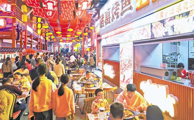 2月23日,位于两江新区的渝味360碗鸿恩大街区国潮美食街,游客络绎不绝。记者 齐岚森 摄\视觉重庆