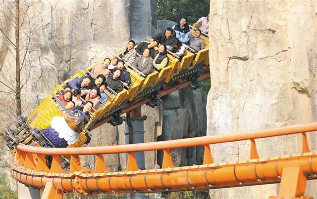 2月21日,沙坪坝区融创渝乐小镇,游客正乘坐鱼鹰矿山车。特约摄影 钟志兵/视觉重庆