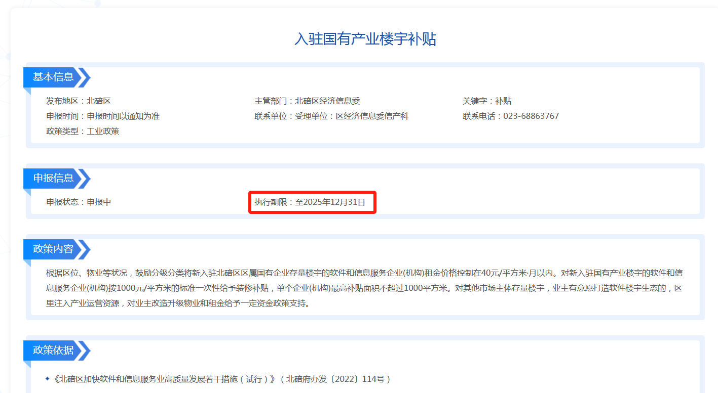 入驻国有产业楼宇补贴